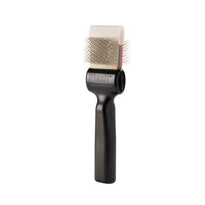 For longer hair, double coated dogs that have a tendency to develop mats, the Firm Flex Red/Silver Mat Zapper – Undercoater COMBO can be a lifesaver for groomers.  Work your way through tough mats with the Red Mat Zapper face, then once through flip the brush over to attack the unwanted undercoat.  Since the Silver Undercoater side also has very linear pin rows, it can also be used to Finish, making this brush the closest thing to having the entire set in just one brush!  COMBOS are two different brush types in one brush head, designed for applications that would normally require you to buy two brushes. Must have tool to help you with the difficult job of daily grooming.