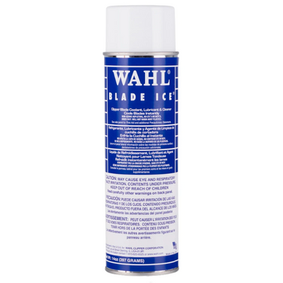 Wahl Blade Ice Clipper Spray - Coolant Lubricant Cleaner (397g).  Cools blades instantly. Safe on most plastics. Blade Ice is a quick effective lubricant that provides instant cooling, lubrication and cleaning for your clipper blades. Simply spray Blade Ice through the clipper blades occasionally, during the time you are clipping. The results are reduced friction, less heat and less blade wear without the heavy residue of oil.
