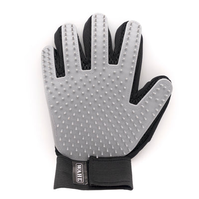 Grooming has never been easier with our De-shedding Glove! Kill two birds with one stone by petting your animal whilst also getting rid of loose hair, dirt, debris and detangles; all with one smooth motion. This glove has an ergonomic style design and an elastic wrist band with Velcro fastening for ease and comfort when putting on/taking off. The 180 Silicone tips act as a massaging tool for you pet, making it easy to get in hard-to reach areas. This material can be wet for bath time